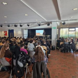 Am Montag, den 3. November 2025, war der Jugendbuchautor Dirk Reinhardt zu Gast an unserer Schule. Vor dem gesamten 9. Jahrgang stellte er sein aktuelles Buch „No Alternative“ vor und nahm die Schülerinnen und Schüler mit auf eine Reise durch die Themen und Hintergründe seines Romans.
